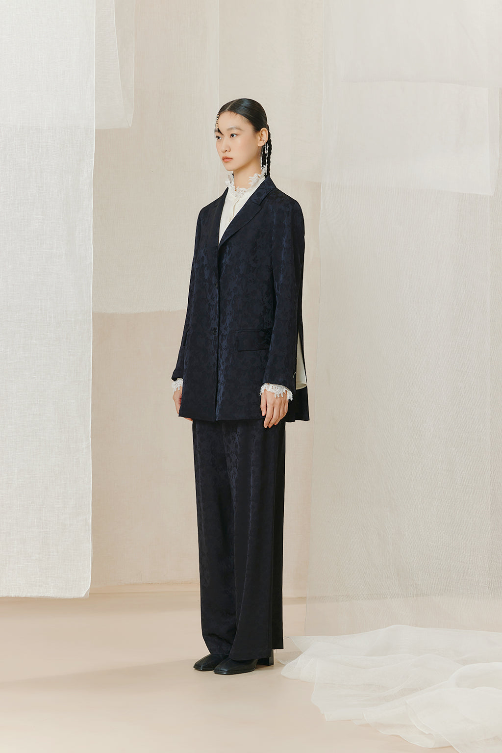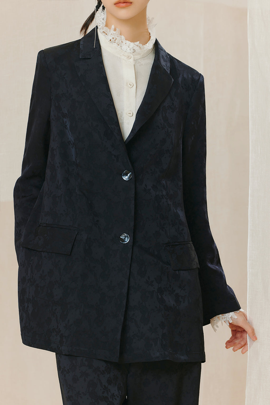 This H-silhouette blazer stands tall at the shoulders, has clean sleeves and a low neckline that elongates your figure for a tall and slim appearance. The loose fit also gives more room to play inside, and is also suitable for most body shapes, using jacquard fabric, drape silky, flexible and wrinkle-resistant, light and breathable