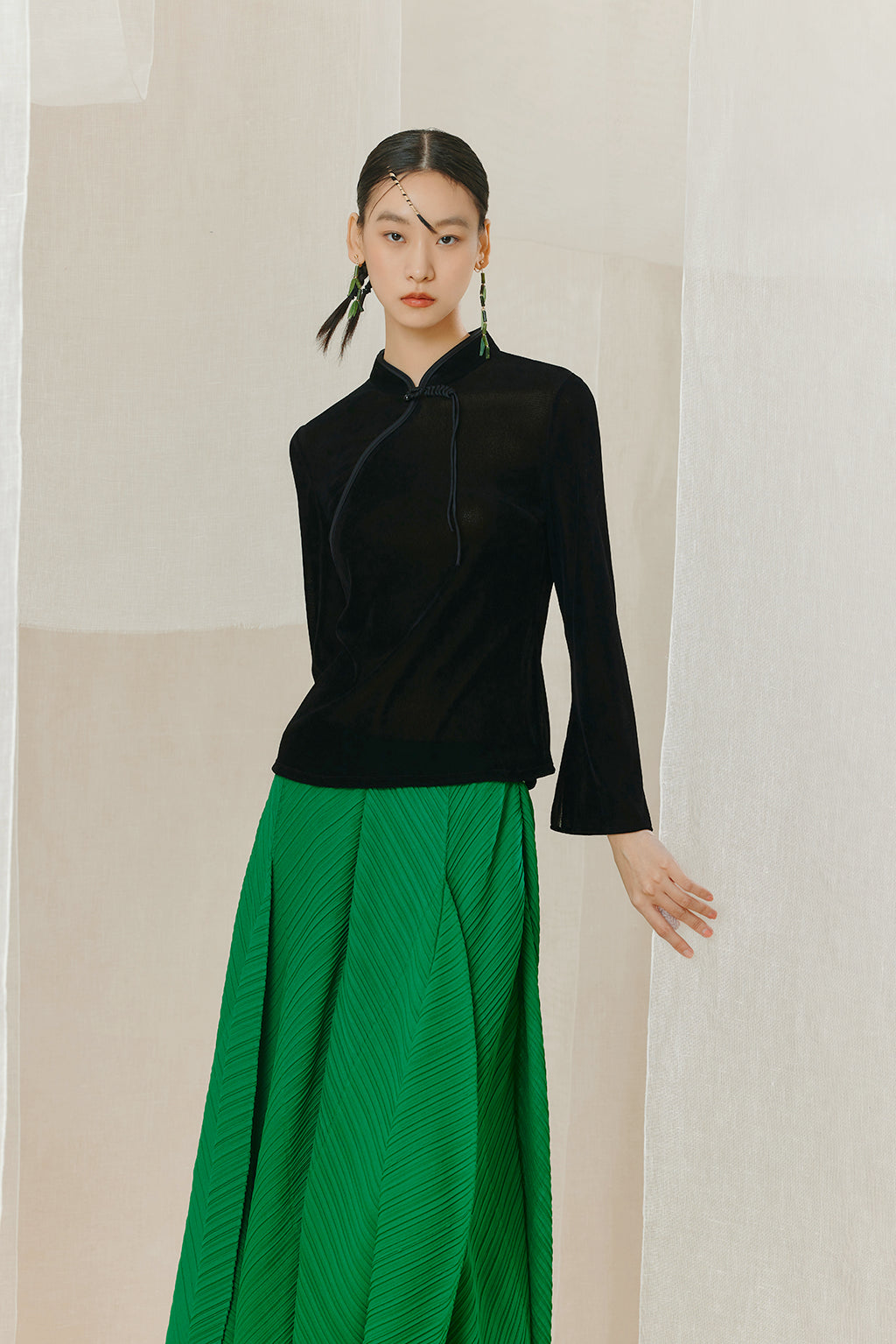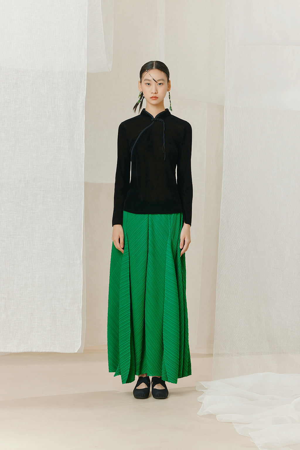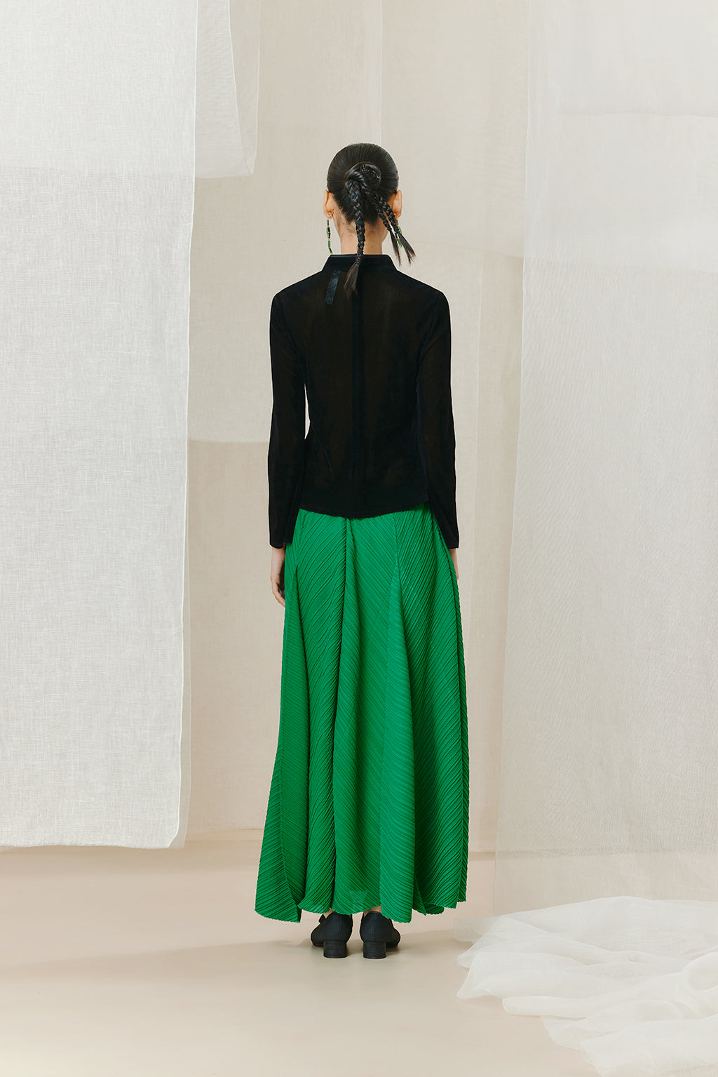 Through elegant design, we hope to "capture" the fleeting beauty of the body when it dances. Cut from plain creases, this skirt has parallel crepe stitching and has neat, clear pleats that swing gently with your steps.Dress up or done.